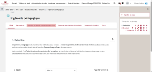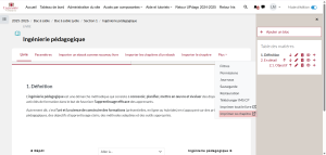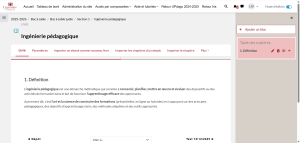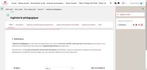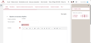 Pour ajouter un nouveau chapitre, il suffit de cliquer sur le symbole « + » d’un chapitre sur la table des matières. Le nouveau chapitre s’ajoutera juste en dessous :