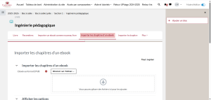 Vous avez aussi la possibilité d’ajouter les chapitres d’un ebook sur un livre que vous avez préalablement créé avec déjà des chapitres à l’intérieur :