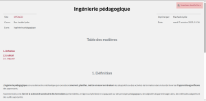 Le Livre permet à l’enseignant de créer une ressource composée de plusieurs pages, comme un livre, avec des chapitres et des sous-chapitres. Les livres peuvent contenir du texte ainsi que des fichiers médias et sont utiles pour afficher des contenus longs à couper en sections. Contrairement à un fichier PDF, le livre UPdago offre une navigation fluide et interactive pour les apprenants.